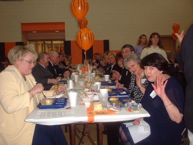 | Today's Principal | Table of 67....The Principal of Brodhead Elementary had dinner with out class of 67. Caroline Graves is on the left, in Yellow. |