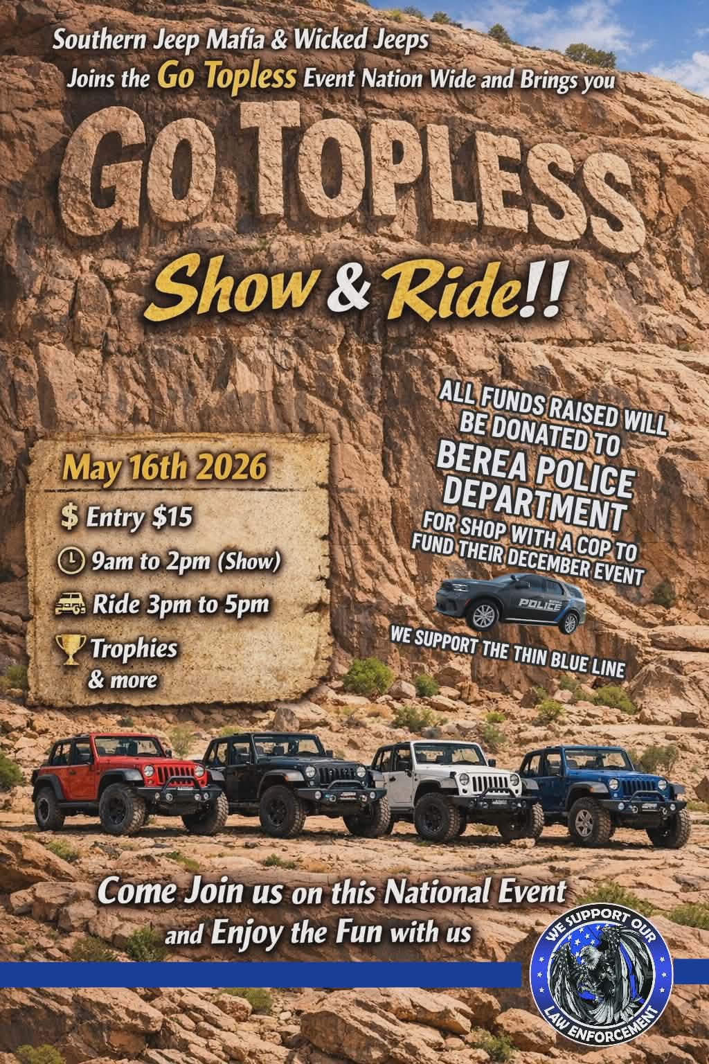 PM Trophies...door prize...located 1835 Bighill Rd. Berea, KY..All funds going donated for Christmas for underpriveleged children. Presented by SOUTHER JEEP MAFIA....LUCKY RACING performance and graphics...DAYS BODY SHOP....WALMART..AND CONCESSIONS BY BEREA LODGE 617 Founder and contact: Brian Smith 859-779-5246 RIDES AFTER SHOW 3 TO 5PM Jeep Mafia May Show-Click here |