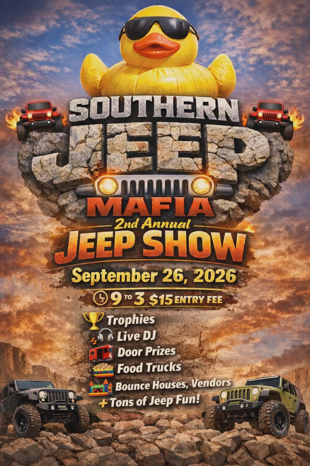 PM Trophies...door prize...located 1835 Bighill Rd. Berea, KY..All funds going donated for Christmas for underpriveleged children. Presented by SOUTHER JEEP MAFIA....LUCKY RACING performance and graphics...DAYS BODY SHOP....WALMART..AND CONCESSIONS BY BEREA LODGE 617 Founder and contact: Brian Smith 859-779-5246 JEEP MAFIA SHOW RIDE AFTER SHOW 3 TO 5 |